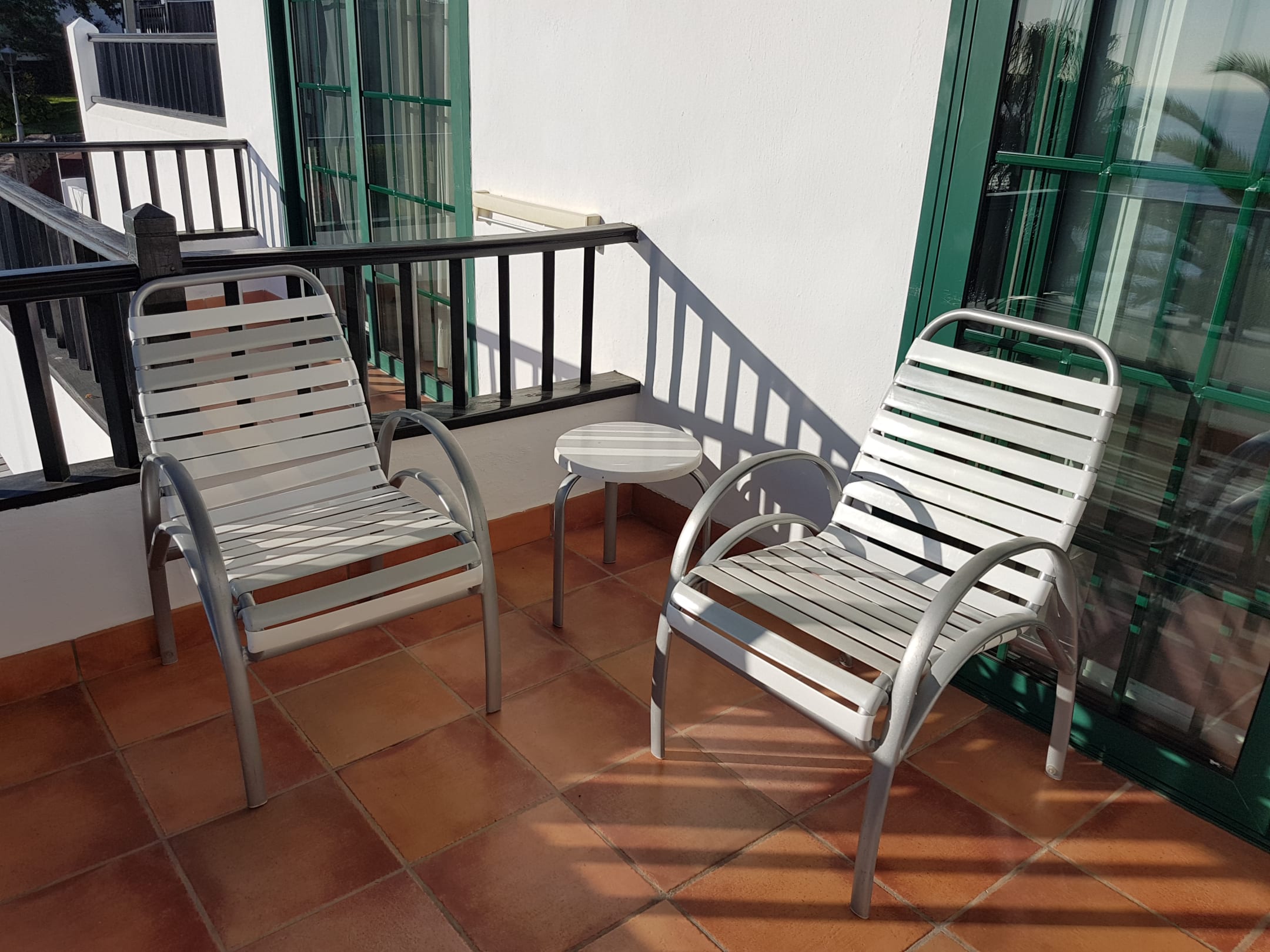 Gemütlicher Balkon in der Sonne (aber: sehr naher Nachbarbalkon)