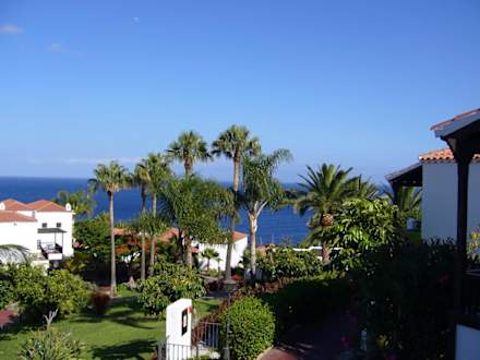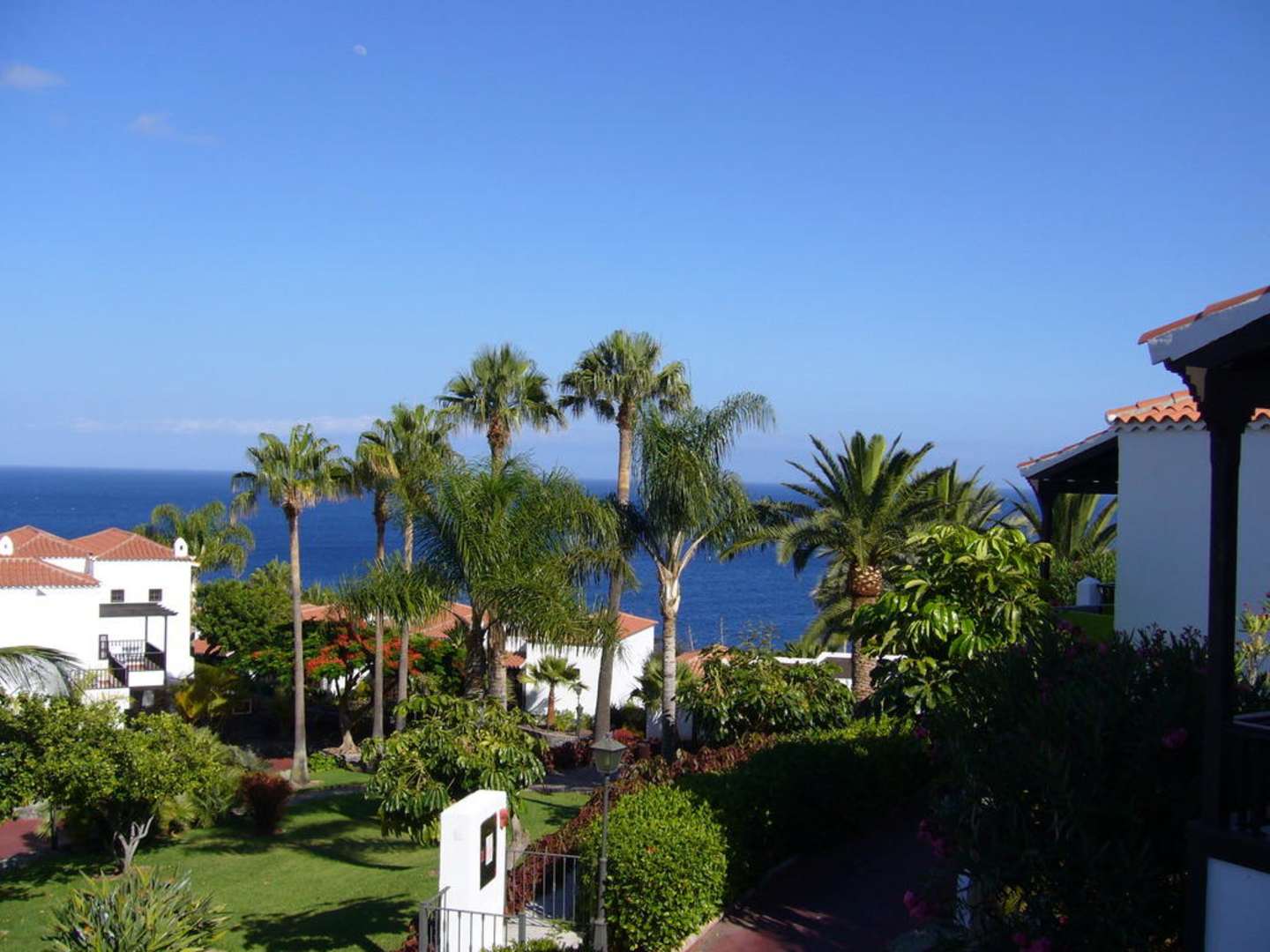 Blick von Zimmer 85 auf Garten und Meer
