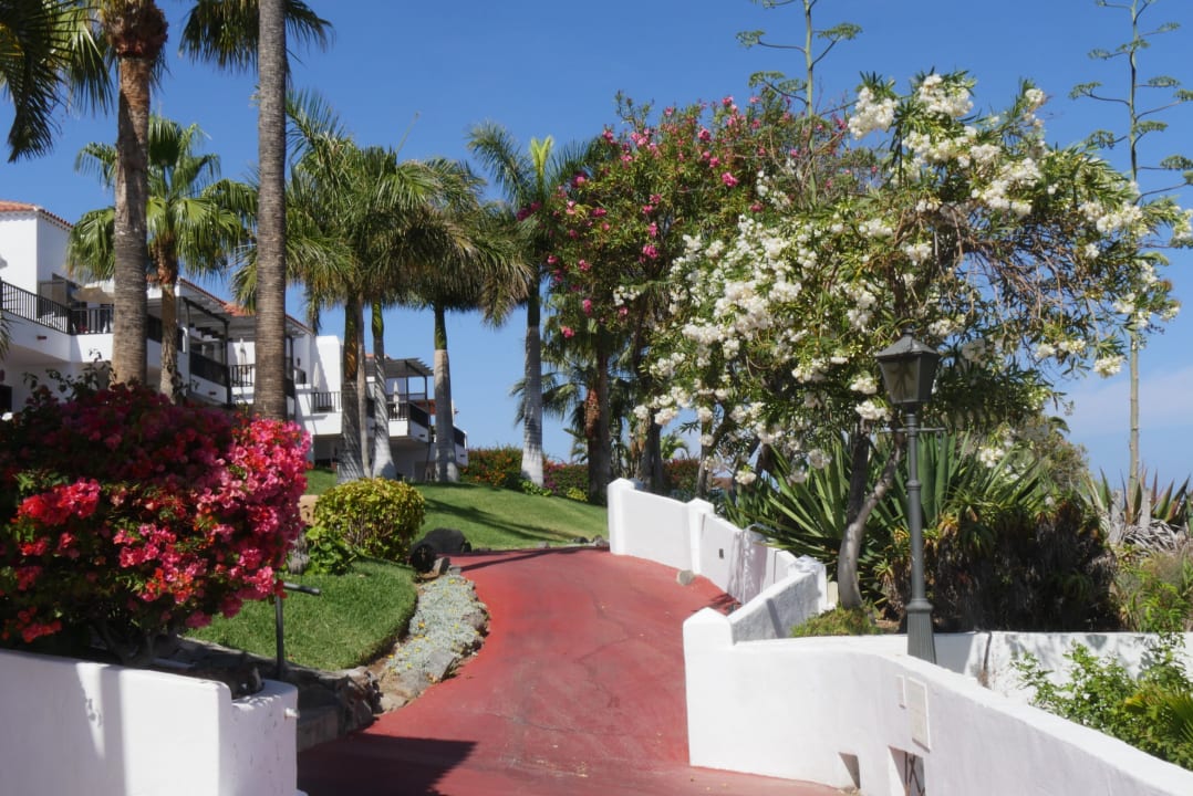 Außenansicht einiger Häuser vom Hotel Jardín Tecina samt Gartenanlage