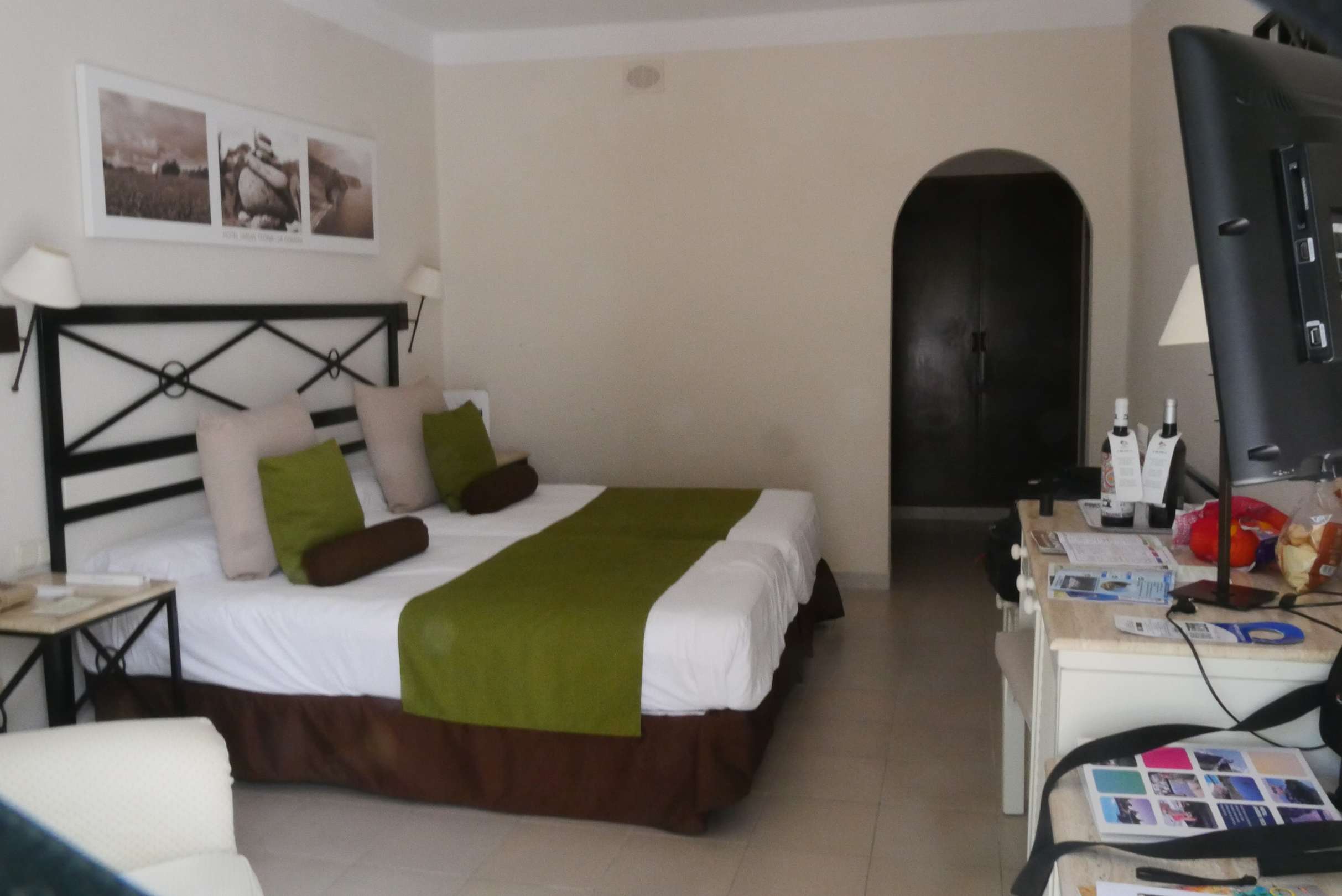 Ausschnitt von Zimmer 134 aufgenommen von der Terrassentür - dem Eingang zum Zimmer - her