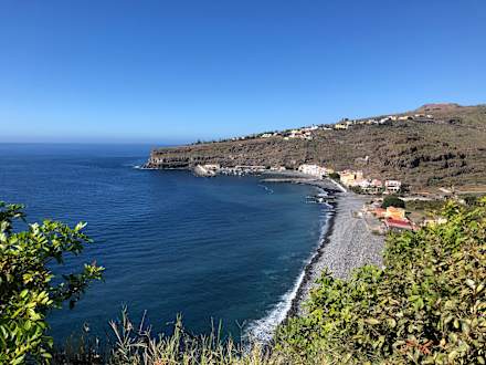 Blick von der Hotelanlage auf die Bucht im kleinen Ort.