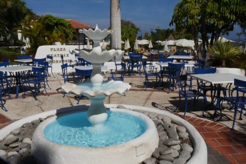 Ein Brunnen auf der "Piazza" neben dem Hauptpool vom Hotel Jardín Tecina