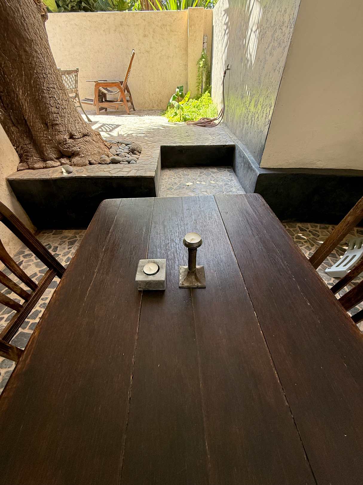 Terrasse ans Zimmer angrenzend, blickgeschützt und schattig (angenehm!)