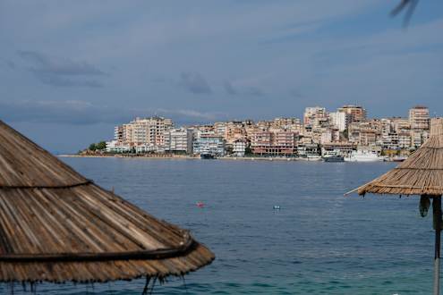 Blick vom Privatstrand nach Saranda City mit Teleobjektiv
