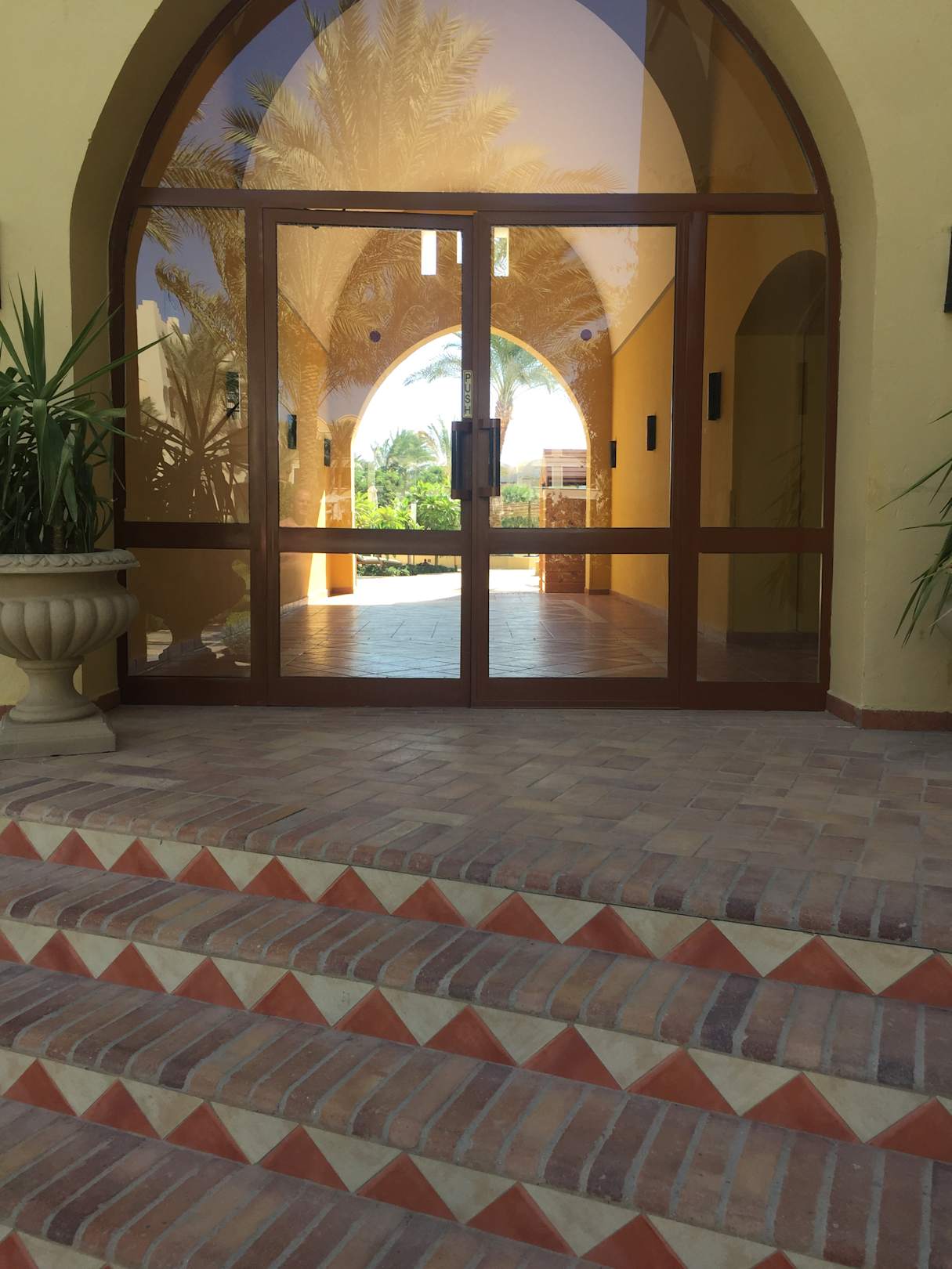 Op weg naar het strand via een buur hotel