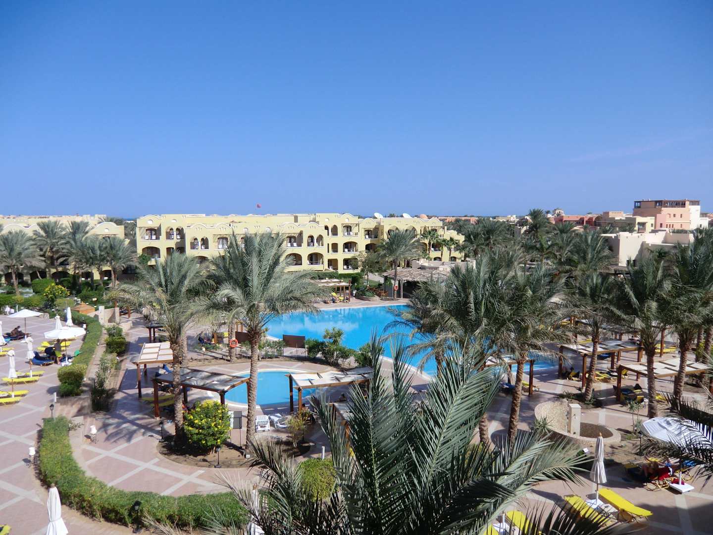 Blick auf den Pool vom Zimmer