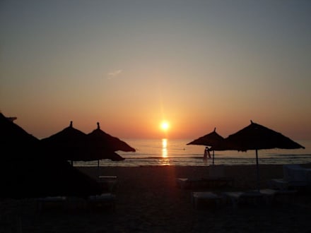Wschód słońca z plaży przy hotelu Tour Khalef