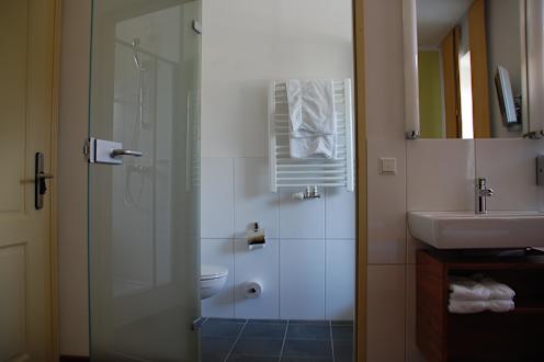 Blick ins Duschbad mit WC