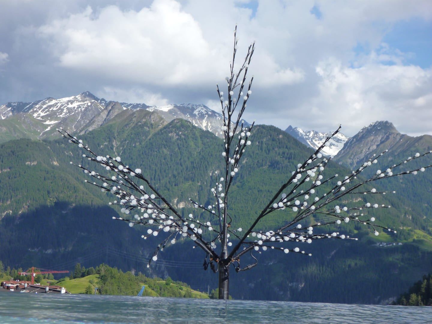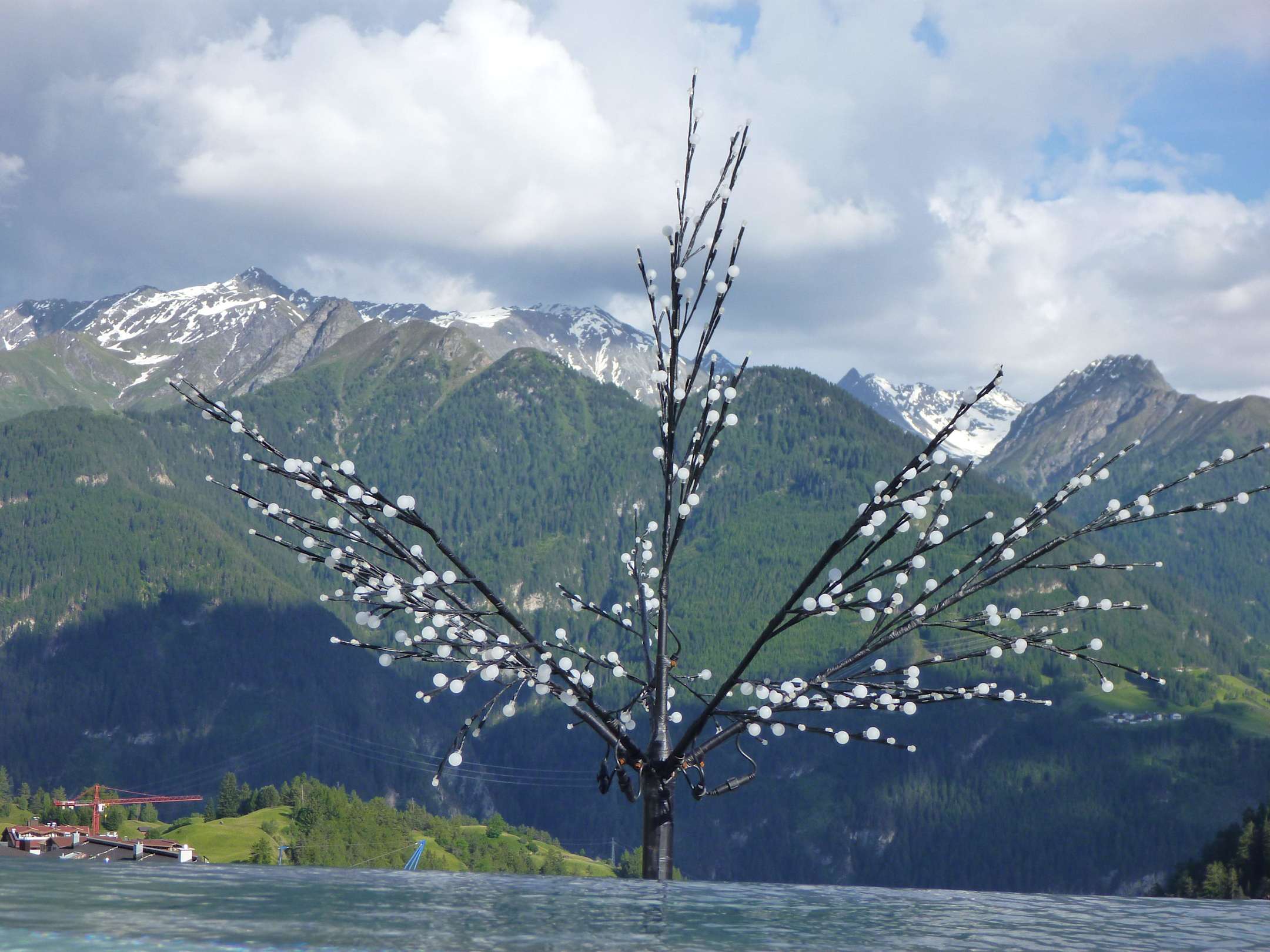 Pool, Beleuchtung und Berge