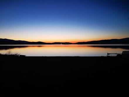 Sonnenuntergang, direkt am Hotel. Der See war totenstill, Es war unbeschreiblich ruhig und wunderschön
