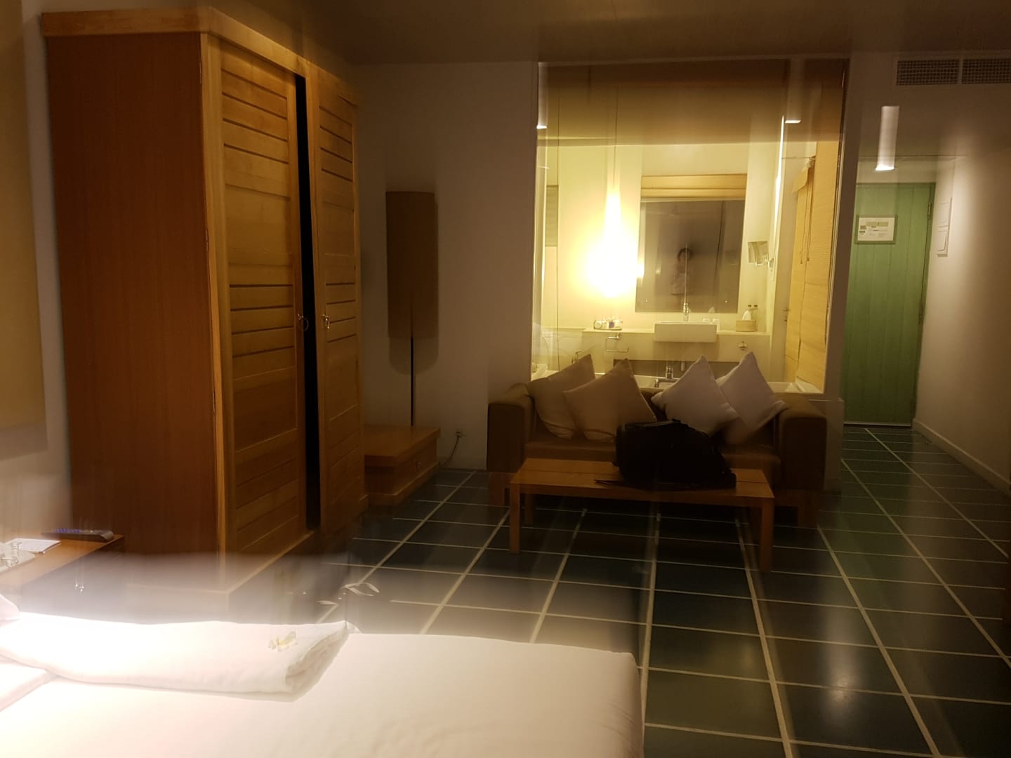 Mit Blick ins Badezimmer
