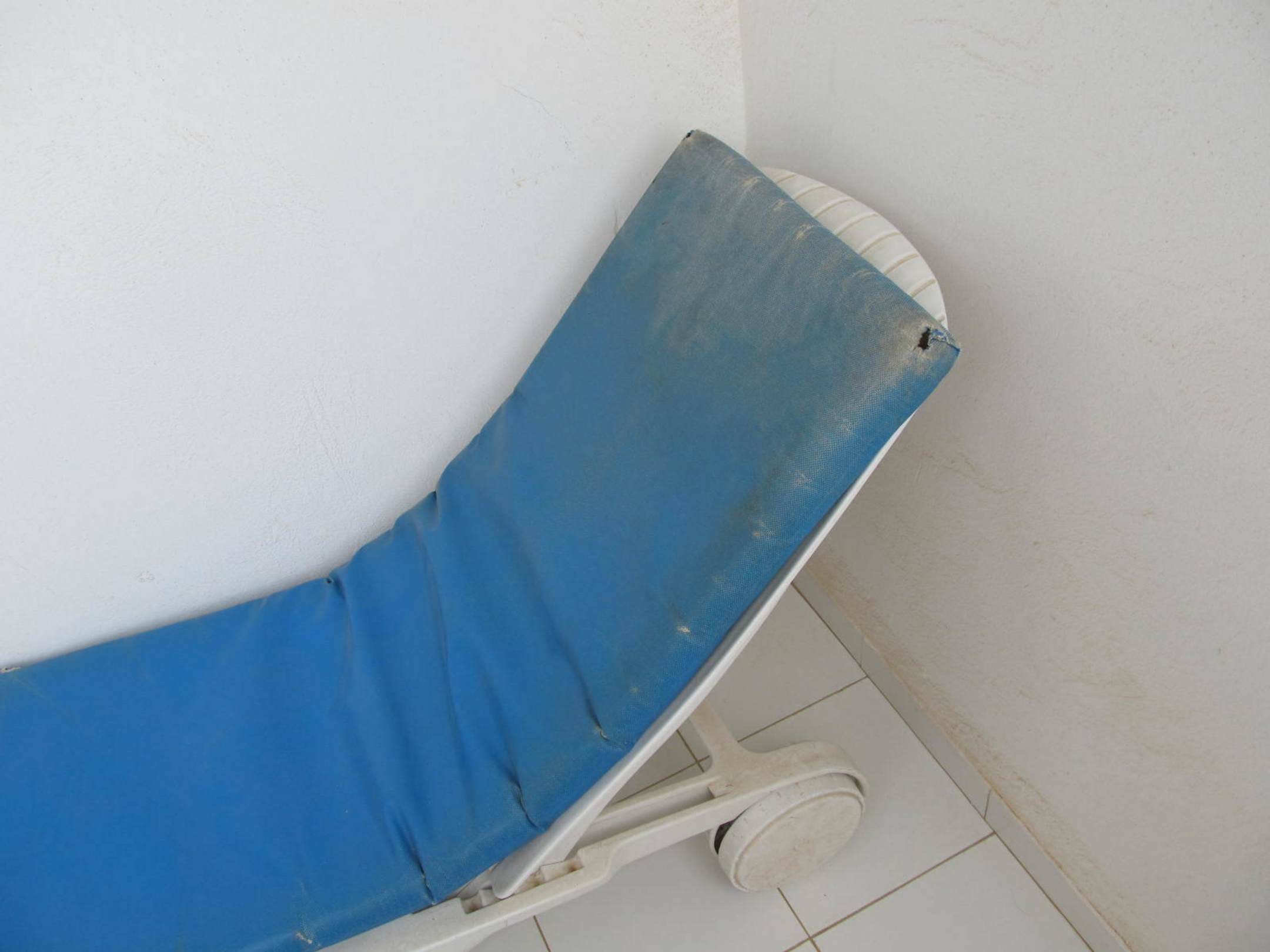 Die Auflage auf der Liege auf dem Balkon