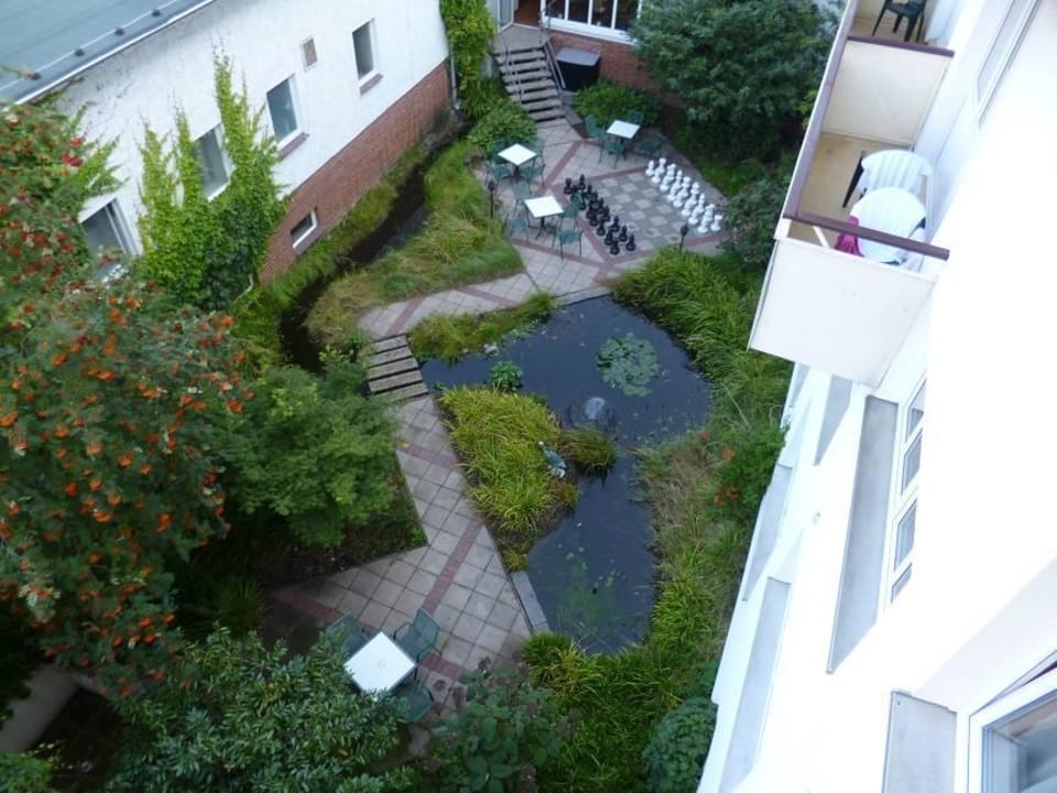 Der schön gestaltete Hotelinnenhof