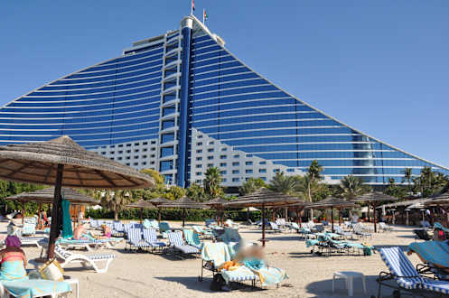 Der Jumeirah Beach Club kann kostenlos von Gästen des Emirates Towers mitgenutzt werden. Shuttle, Liegen und Handtücher sind frei. Nebenan ist auch der Wild Wadi Wasserpark (ebenfalls kostenlos).