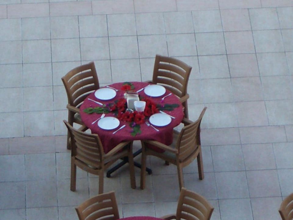 unser geschmückter reservierter Frühstückstisch