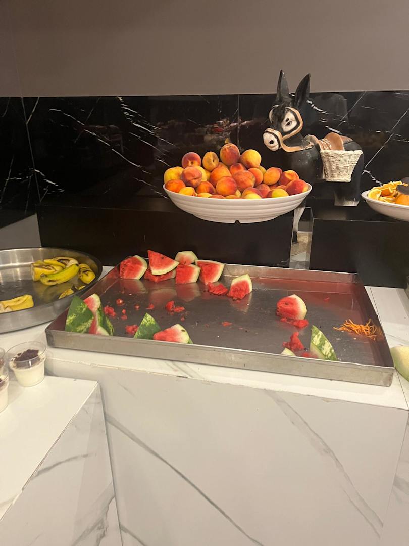 auch das Obst wurde nie gewechselt die ganzen Melonen Bananen sonstige Früchte waren jeden Tag in Massen da ich bezweifle, dass die jeden Tag neu aufgetischt werden