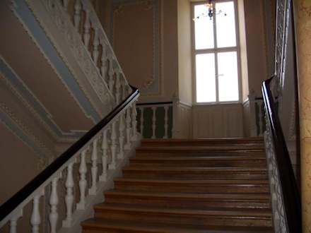 Alte Holztreppe (Vorsicht: schiefe Stufen)