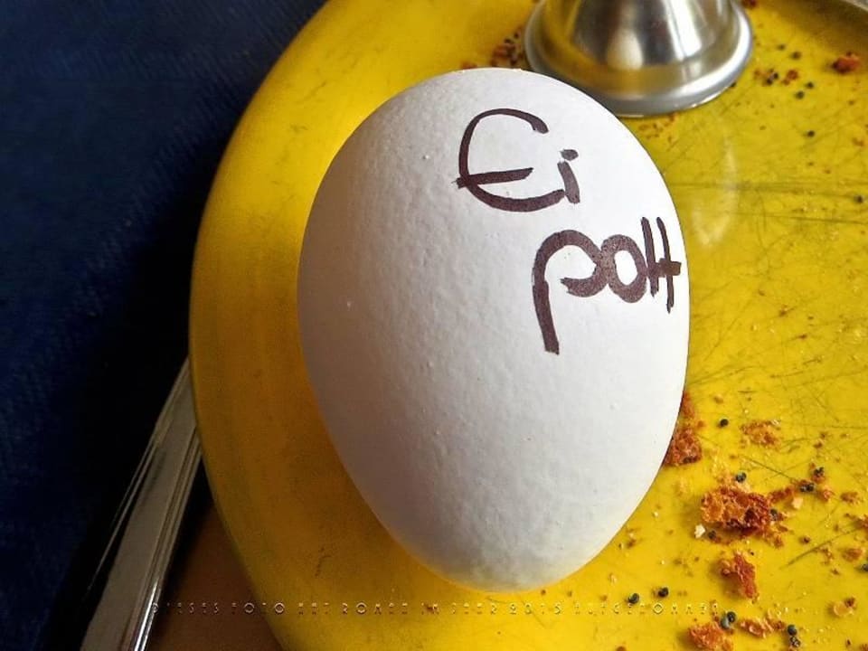 Liebevoll beschriftetes, weiches Frühstücksei