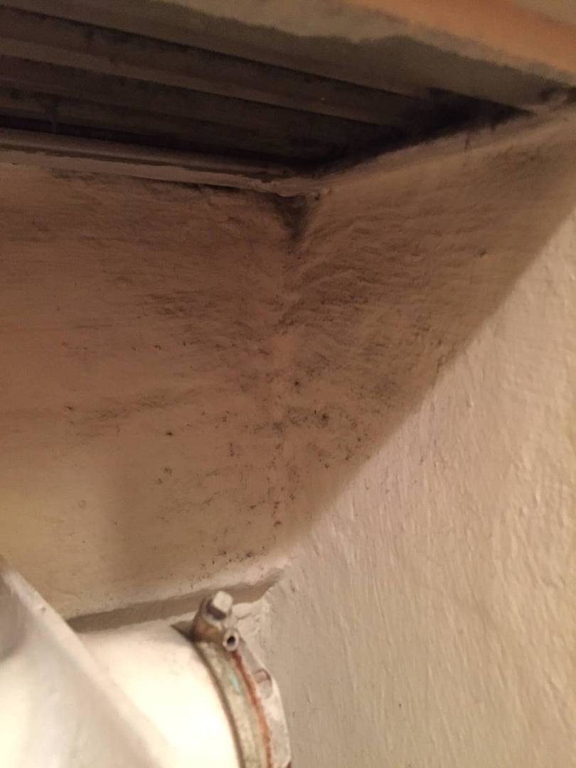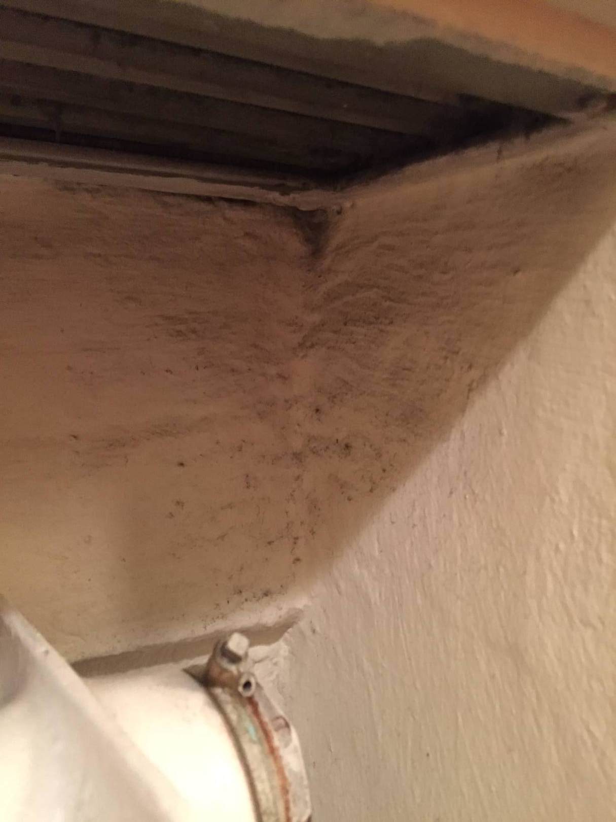 Wand unter dem Fensterbrett zeigte deutlichen Schimmelbefall.