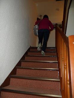 Enger Treppenaufgang zu den Zimmern