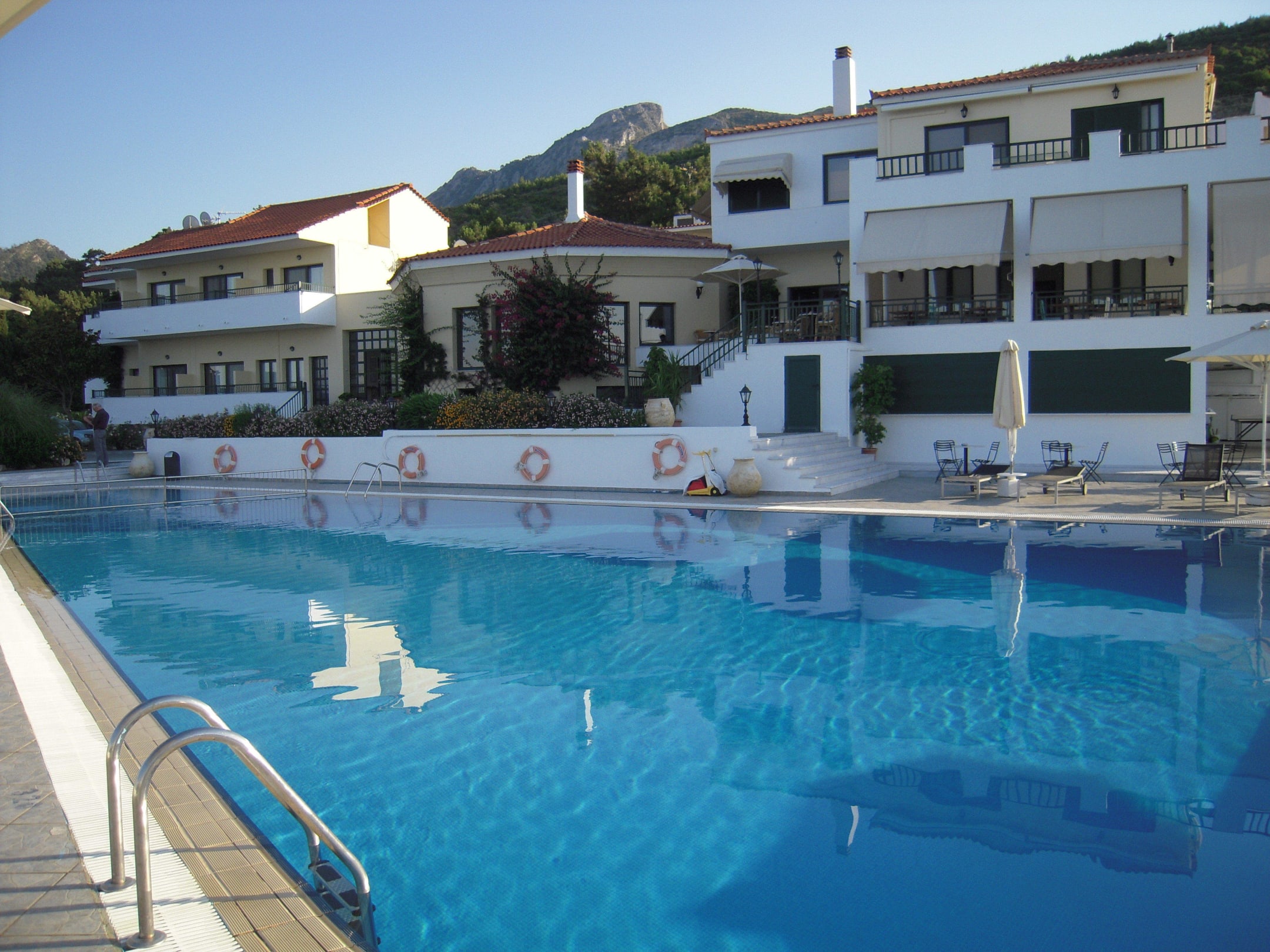 Blick vom Pool zum Hotel