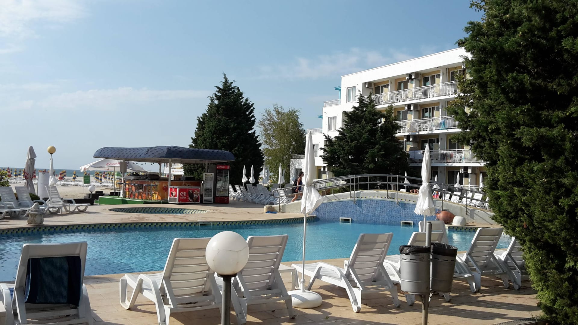 Blick aus dem Zimmer auf den Pool