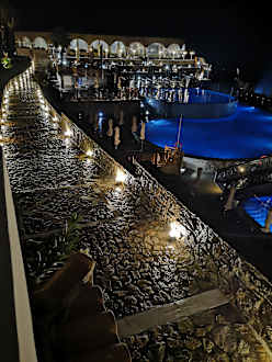 Pool und im Hintergrund eins der Restaurants