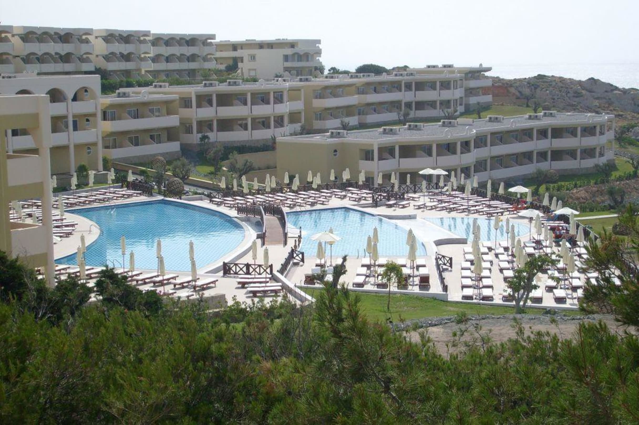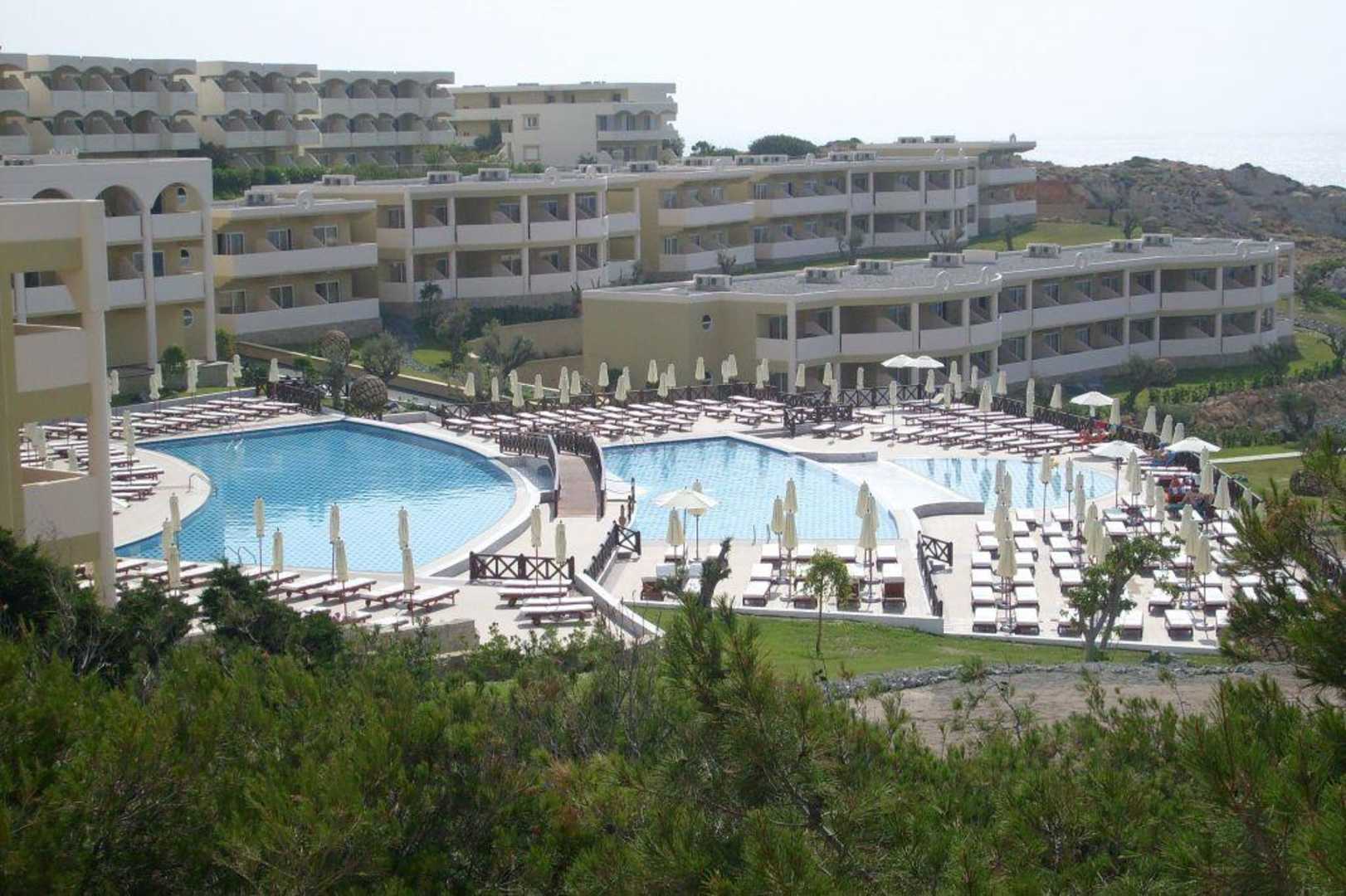 Blick von der Strasseim Vordergrund sind die Neubauten vom Winter 2007 und die Poolanlage, die obere Reihe sind die "alten" Außenblöcke des KMP