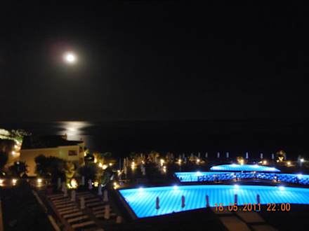 Blick vom Balkon Zimmer 748 bei Nacht.