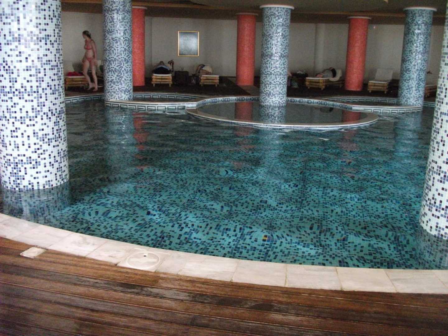 Innenpool im Nebengebäude ( z. Horizon gehörig)Obwohl sich der flache Innenpool (mit Jacuzzi) in einem Gebäude der HORIZON-Anlage befindet, durften auch wir nicht all inc. Gäste ihn ohne Weiteres benutzen, wie auch die angrenzende MYTHOS-Bar u. den dazugehörigen Außenpool.