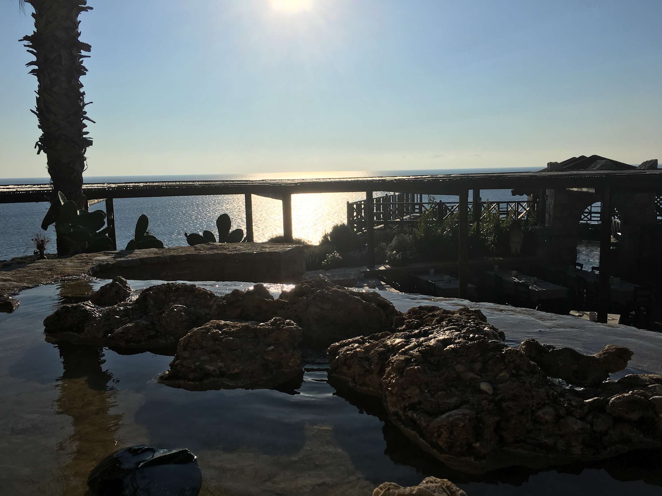 Der Blick vom Restaurant aufs Meer raus