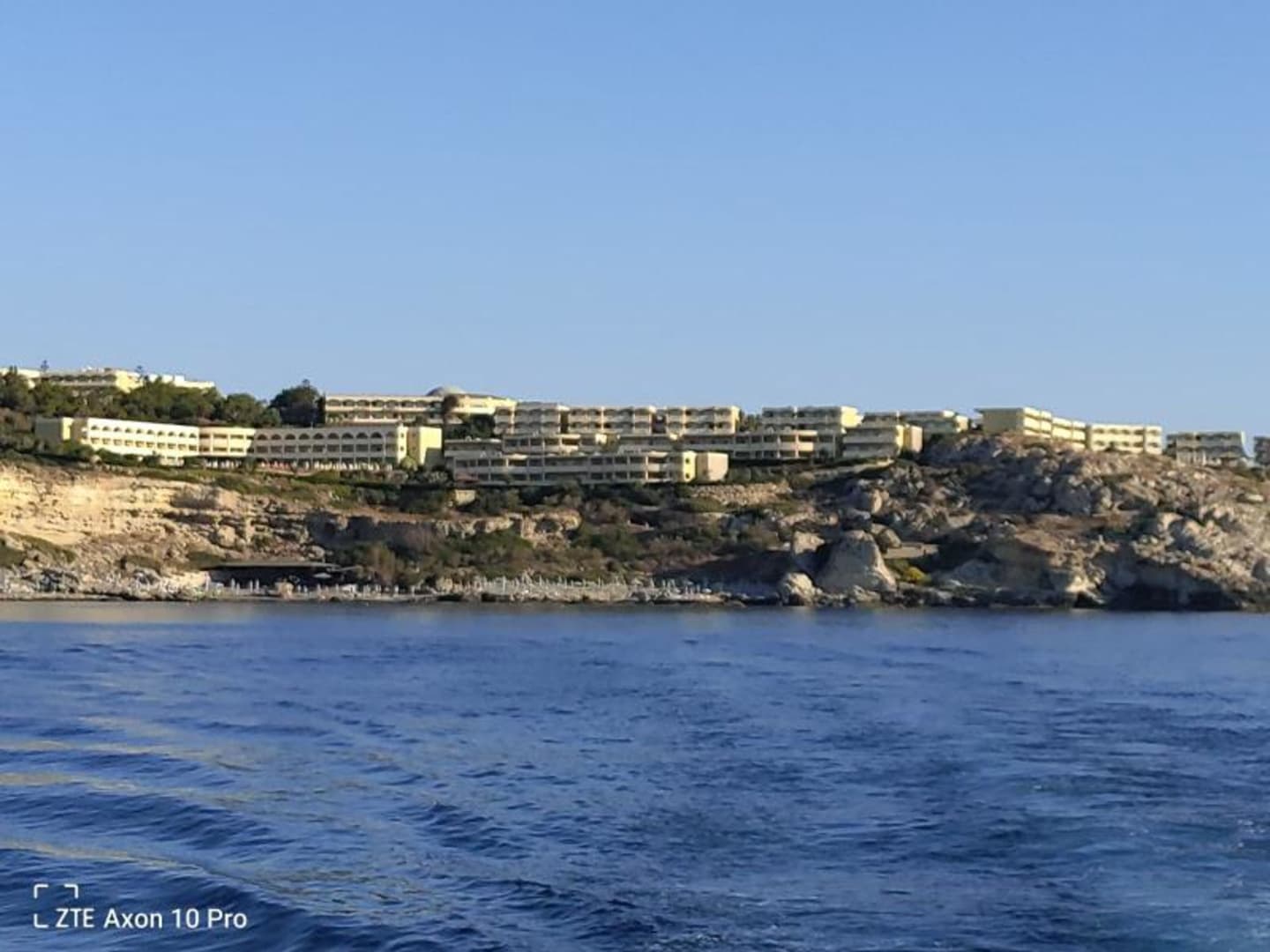 Blick vom Meer auf das Hotel.