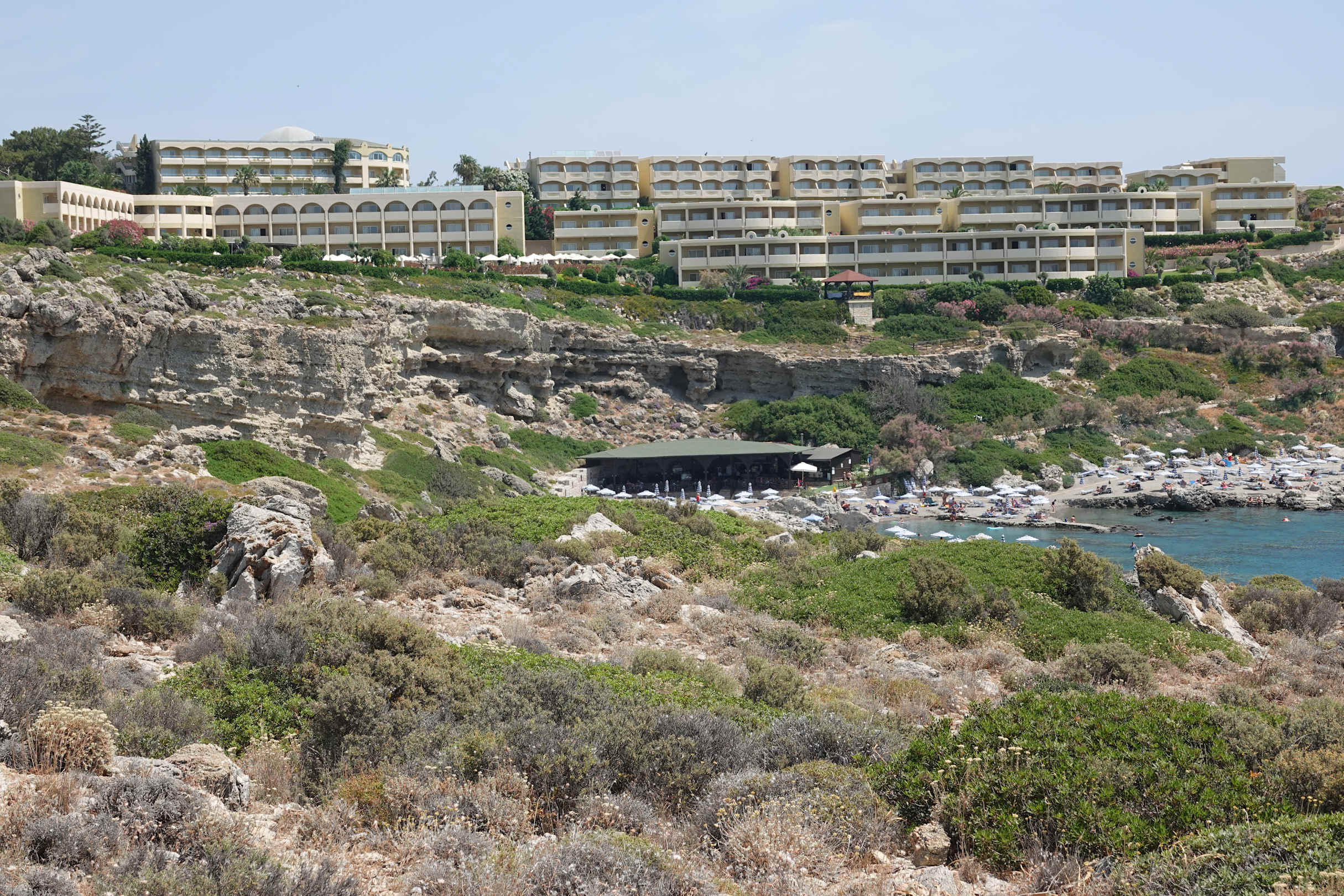 Außenansicht und Felsstrand
