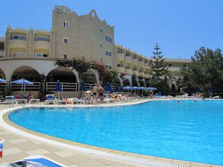 Blick vom Pool zum Hotel