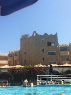 Blick vom Pool auf"s Hotel Haupthaus