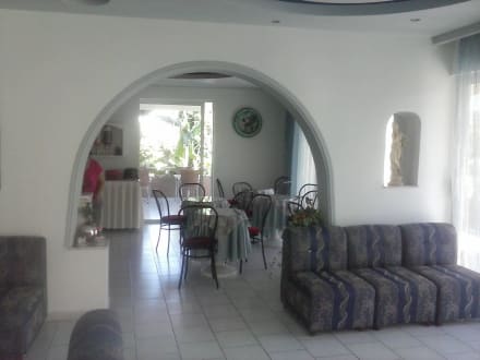 Der gemütliche Frühstücksraum mit Außenterrasse