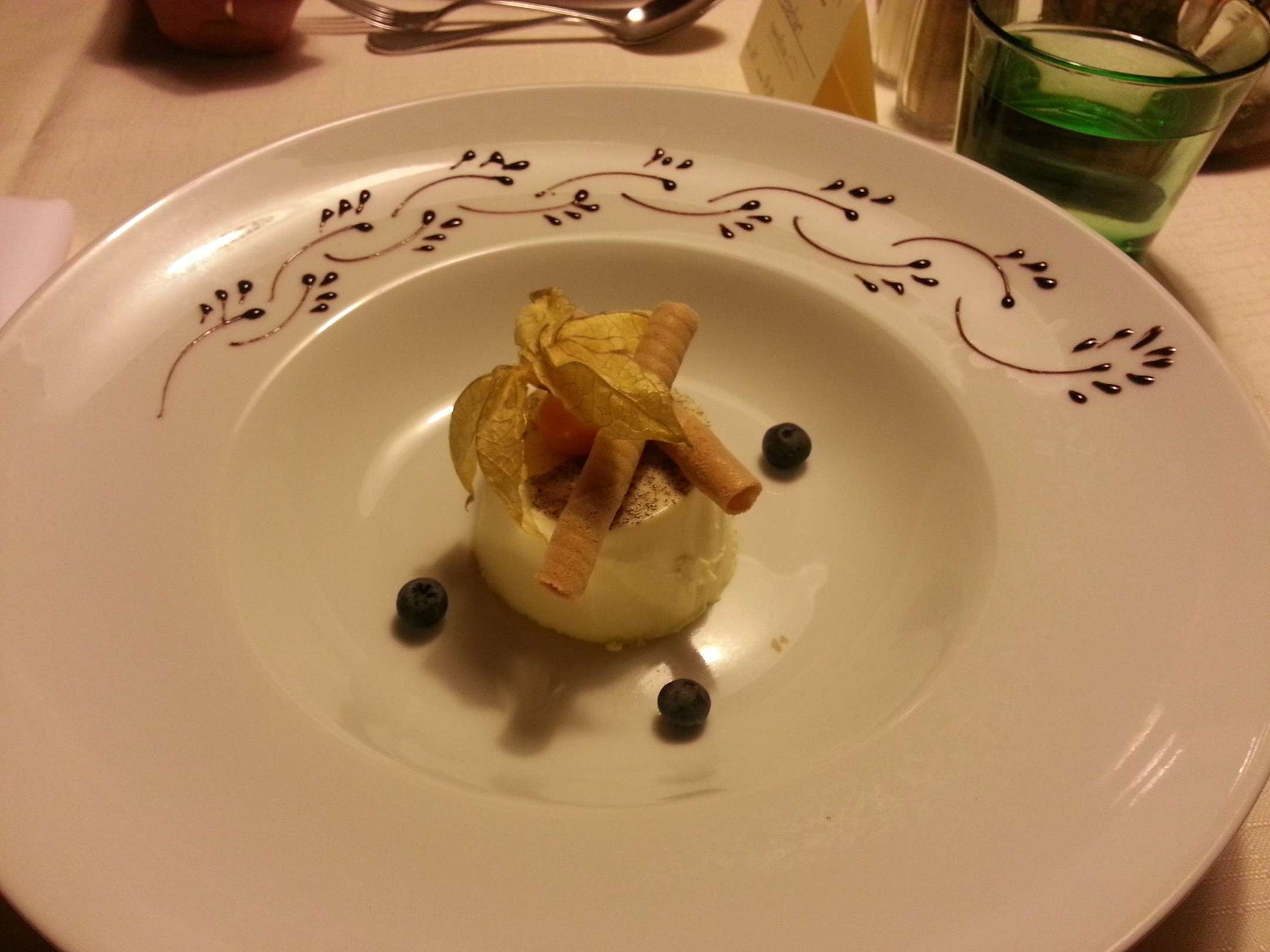 Die Verzierung auf dem Tellerrand ist auch Schokolade gemacht.