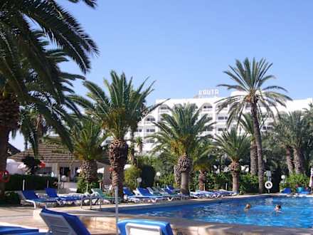 Pool mit Hotel im Hintergrund