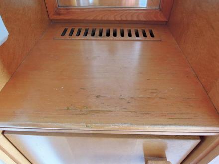 Holzplatte über der Minibar...