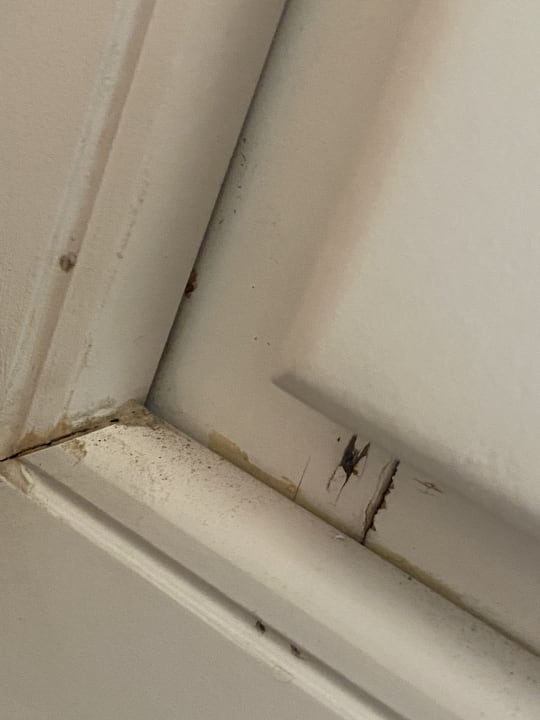 Nagel aus dem Fensterrahmen, neben Bett Familienzimmer
