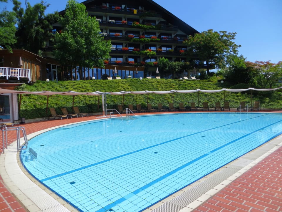 Outdoor Pool mit Haus "Karnerhof" im Hintergrund