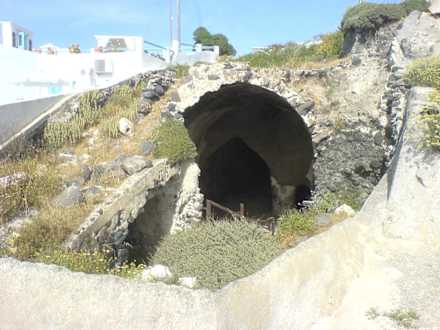 Links unser Zimmer (Sonnenschirm), rechts ein Teil der Ruine