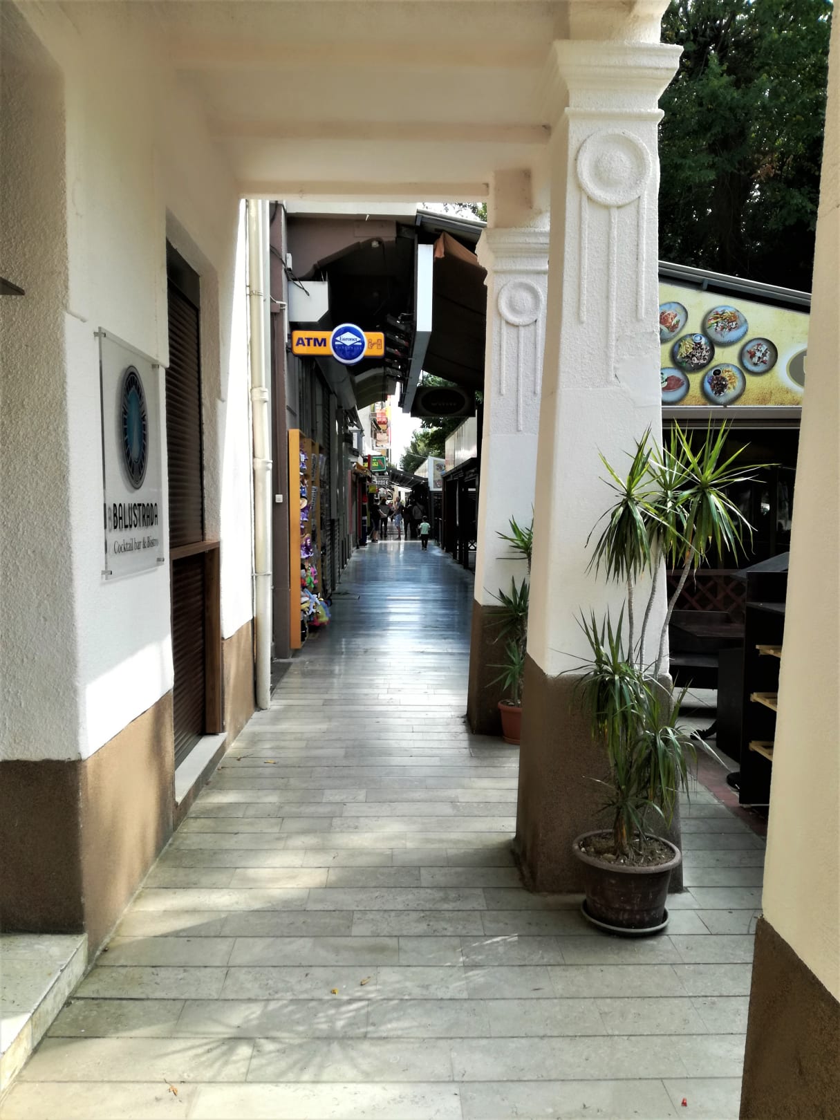 Einkaufsmeile alles unter Bäumen und Abdeckungen