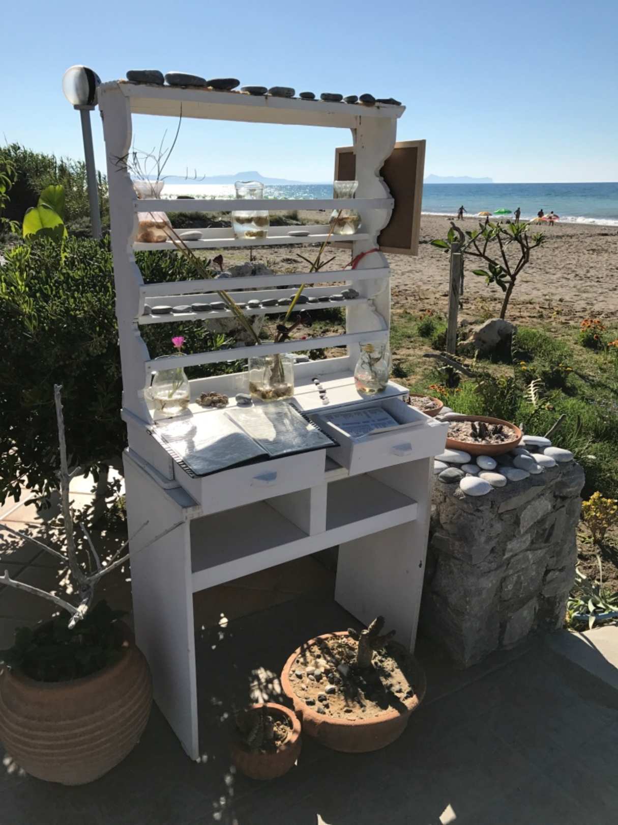 RestaurantAuf dem Weg zum Strand steht dieses süße Büffetschränkchen mit der Speisekarte der Snack Bar.