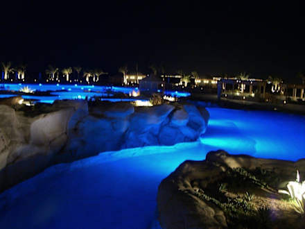 wunderschöne Poolanlage nachts.