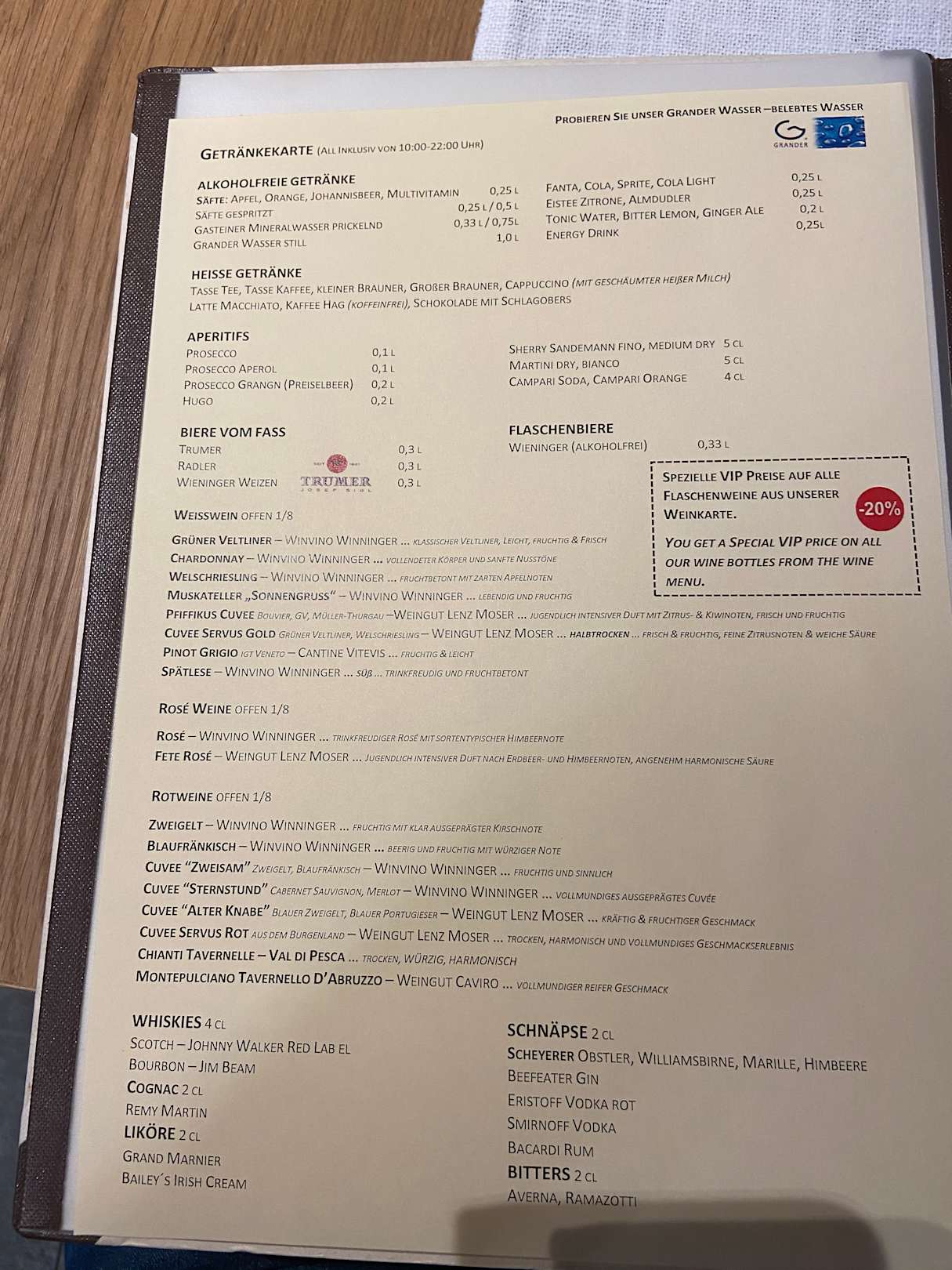 All Inklusive Getränkekarte mit Markengetränken