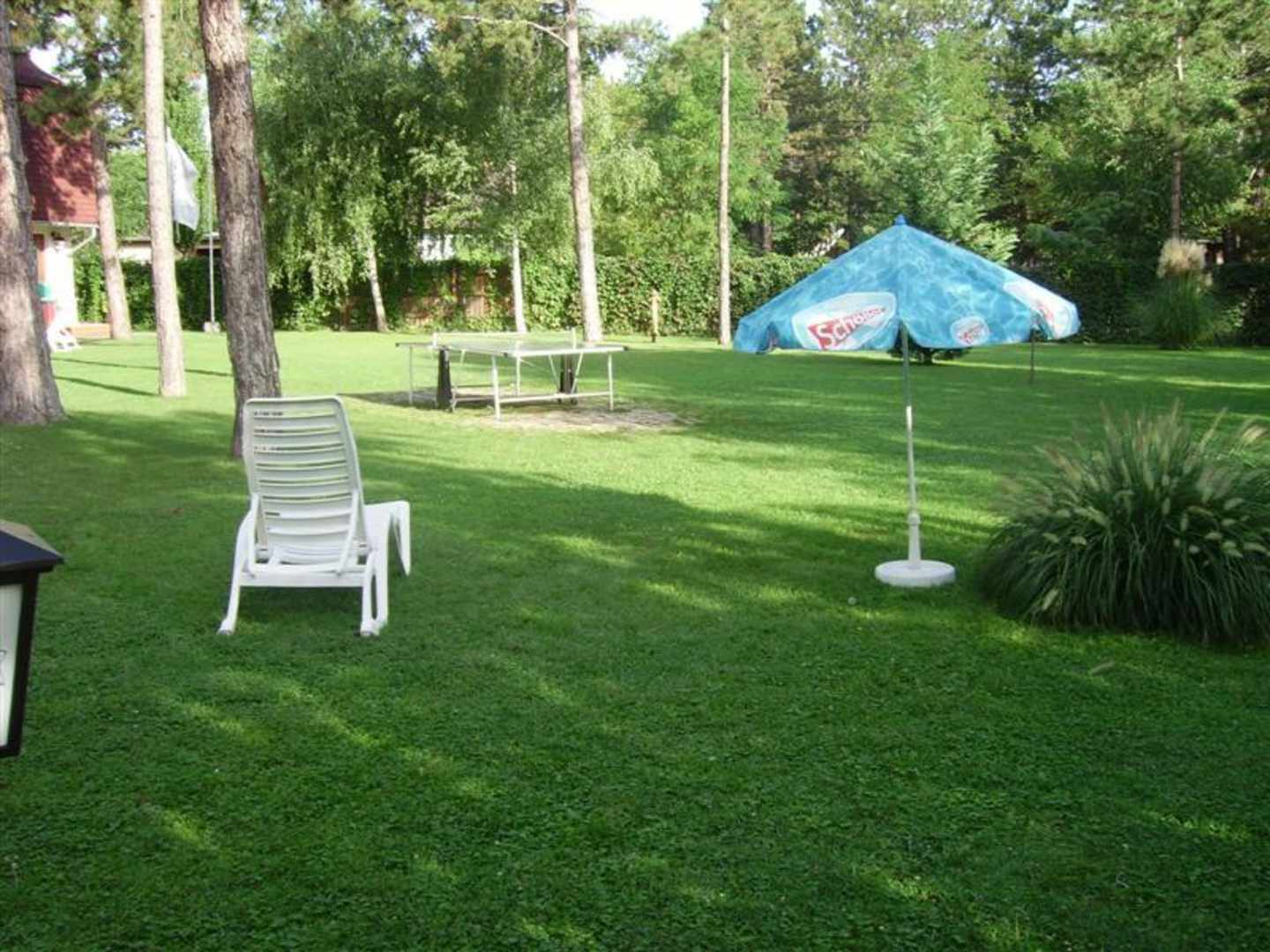 Blick in den Garten mit Tischtennisplatte