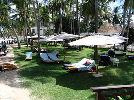 Die Liegewiese im Palmengarten vom Kenya Bay Beach Hotel.