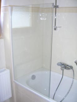 Badezimmer mit Wanne und Duschwand