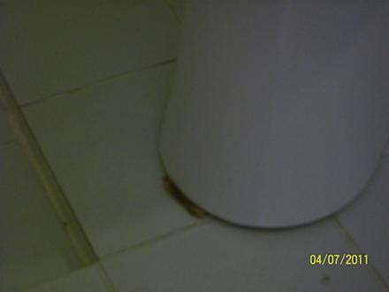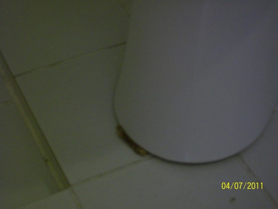 Diese Toilette wurde in der Rezeption reklamiert so sieht sie nach der Reparatur aus.Es wurde ein Holzkeil druntergelegt, vorher war es ein zusammen gefalteter Karton.